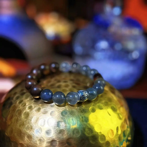 Blue Phantom Quartz & Agarwood Bead Bracelet